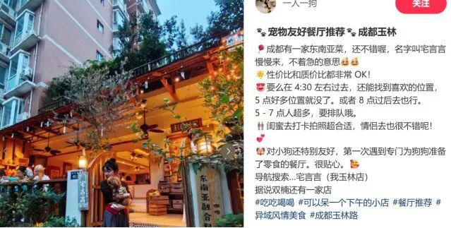 在成都,宠物友好餐厅悄然兴起,许多餐厅推出了宠物就餐服务。例如,位于桂王桥南街的一家西餐厅和位于宏济中路的一家日料店,都提供了宠物餐食、饮用水、宠物粪便袋以及宠物生日宴承办等服务;